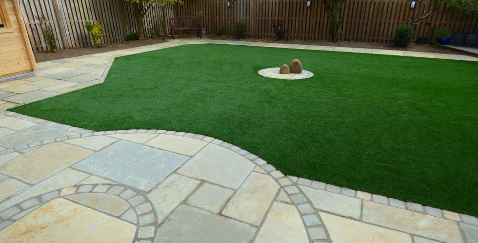 We achieved this by installing a Trulawn artificial lawn and creating Brett Limestone paved paths around the perimeter of the garden.