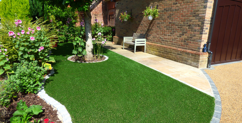 The front of this property in Hildenborough now looks stunning after we installed a resin bound driveway edged with sawn granite setts from Rock Unique. Set off beautifully with a Trulawn Luxury artificial grass. All these materials compliment each other perfectly and create elegant kerb appeal.