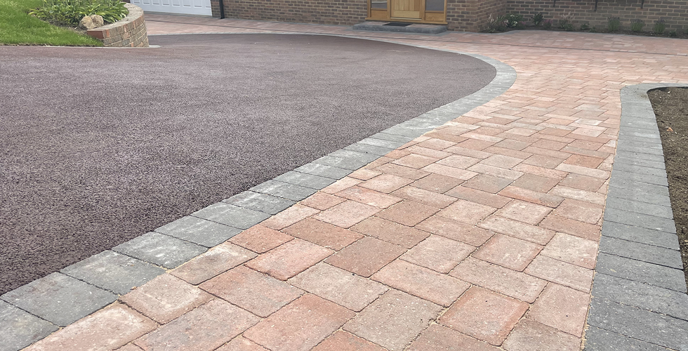 Great workmanship from Will and Ben on transforming this driveway from a small tired tarmac drive to a large tarmac and Brett Alpha Brindle block paved sweeping driveway, with Brett charcoal borders.